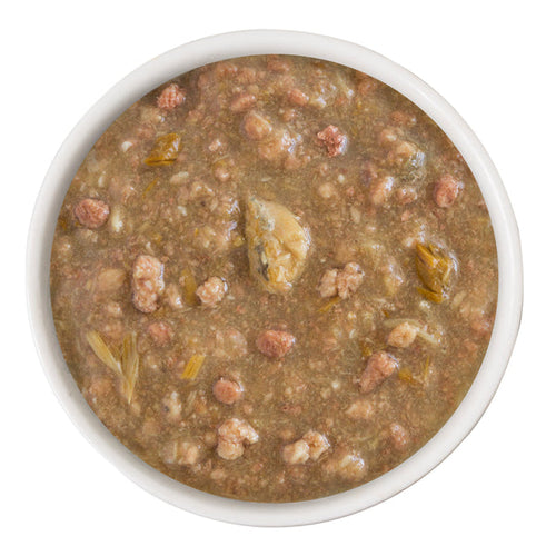 Turkey Broth, Turkey, Chicken, Salmon, Natural Flavor, Tapioca Starch, Coconut Oil, Guar Gum, Potassium Chloride, Tricalcium Phosphate, Choline Chloride, Celery Powder, Taurine, Zinc Oxide, Vitamin E Supplement, Reduced Iron, Salt, Niacin Supplement (Vitamin B3), Sodium Selenite, Thiamine Mononitrate (Vitamin B1), Vitamin A Supplement, Manganese Sulfate, Vitamin B12 Supplement, Copper Amino Acid Complex, Pyridoxine Hydrochloride (Vitamin B6), d-Calcium Pantothenate, Riboflavin Supplement (Vitamin B2), Biotin, Vitamin D3 Supplement, Folic Acid, Potassium Iodide, Menadione Sodium Bisulfite Complex (Source Of Vitamin K)